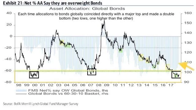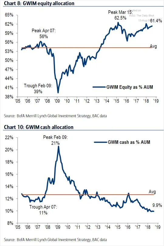 La cantidad de dinero invertido en bonos y acciones es propia de techos de mercado.