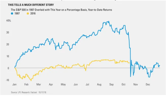 Como hemos señalado al comienzo de este artículo Ryan Detrick estima que si bien es cierto que parecen existir muchos paralelismos entre 1987 y 2016 no lo es menos que un análisis detallado muestra las grandes diferencias.