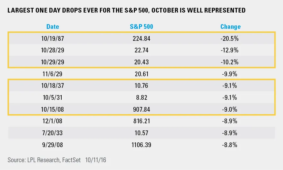 Octubre es tradicionalmente un mes que estadísticamente muestra gran volatilidad. Las mayores caídas en los mercados desde 1928 se hen producido en ese mes: