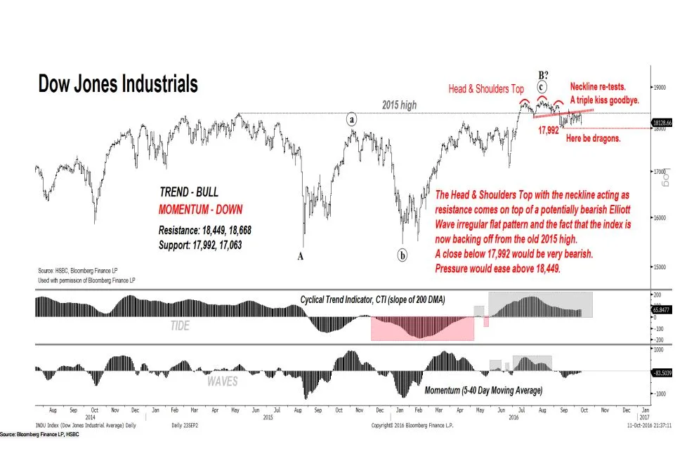 Como hemos anticipado anteriormente Murray Gunn, analista de HSBC, establece como niveles clave los cierres por debajo del 2116-1991 en S&P 500 y 17.992-17.063 en Dow Jones. Un cierre por debajo de esos niveles (que son mínimos recientes) desencadenarían ventas de entidad.