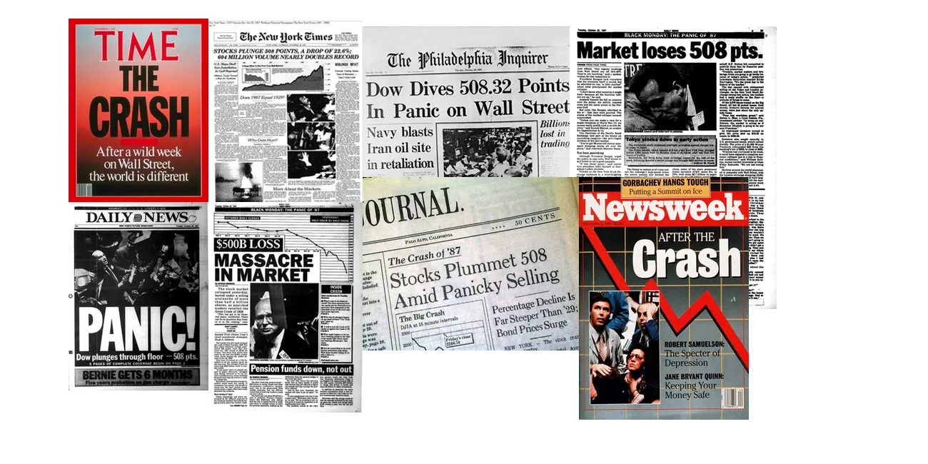 Hoy, miércoles 19 de octubre, se cumplen 29 años del famoso "Black Monday" o "Lunes Negro" de 1987 en el que el Dow Jones se desplomó 508 puntos situándose en los 1739 (-22,6%). La caída del lunes negro fue el mayor derrumbe porcentual sucedido en un mismo día en la historia de los mercado de valores.