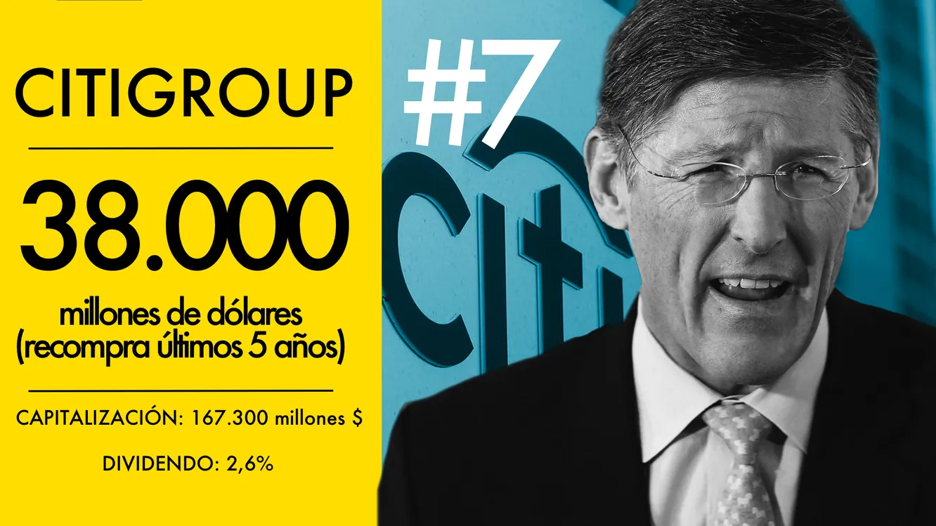 Citigroup ha sido un importante recomprador de acciones en los últimos 5 años mientras se esforzaba por recuperarse de las heridas de la reciente crisis financiera. Ahora que el banco ya ha reforzado sus balances se podría decir que la recompra de acciones, pese a ser muy elevada, puede estar únicamente en sus albores.
