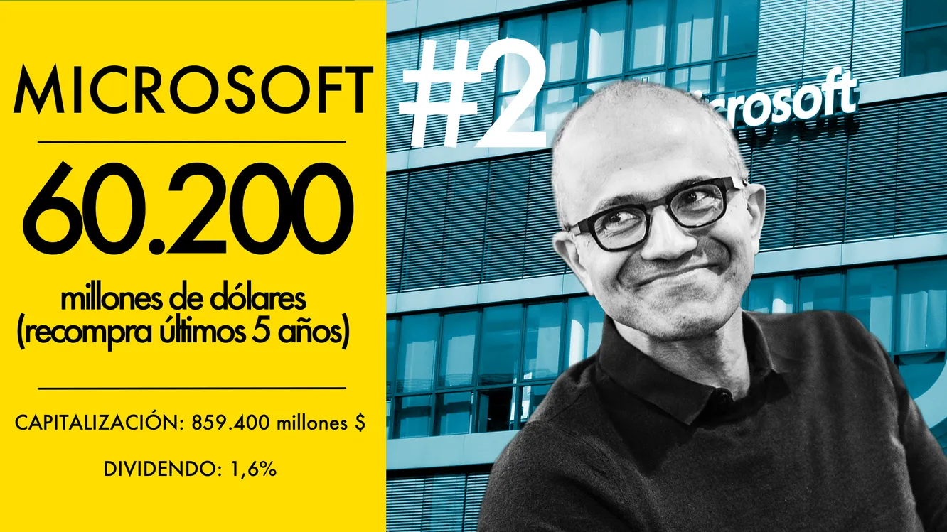 Microsoft ha generado un crecimiento promedio anual por acción del 12% en los últimos 5 años según datos de Thomson Reuters ayudado por más de 60.000 millones de dólares en recompra de acciones. Sólo durante el tercer trimestre de 2018 Microsoft devolverá 6.100 millones en efectivo a los accionistas a través de dividendos y recompras, un 27% más que en el mismo periodo del año anterior.