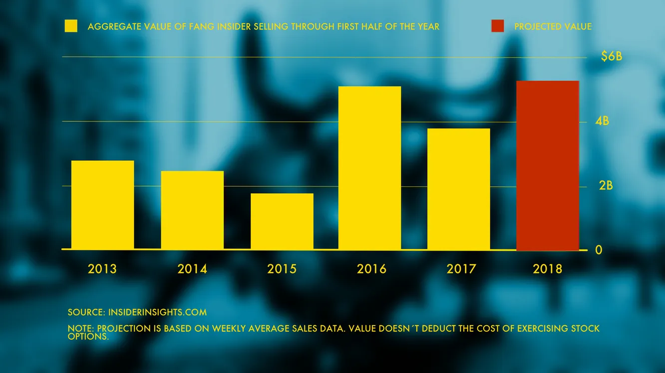 Como ejemplo particular los ejecutivos y directivos de Facebook, Amazon, Netflix y Google Alphabet vendieron el equivalente a más de 5.000 millones de dólares en acciones en el primer trimestre de 2018 que es uno de los niveles más altos desde 2012.