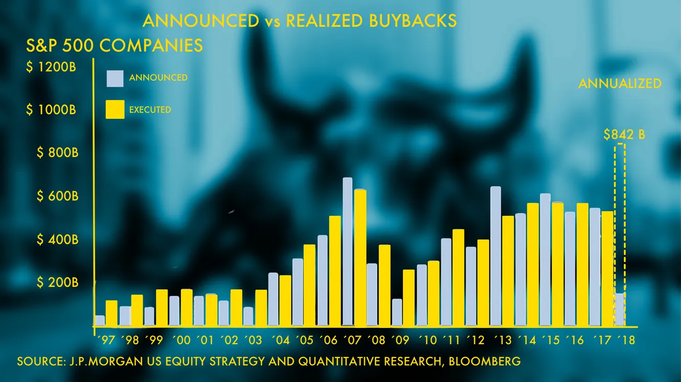 A principios del año 2018 J.P. Morgan pronosticó, con gran sorpresa y escepticismo en el sector, que la recompra de acciones por parte de las empresas norteamericanas batiría un record histórico y alcanzaría la sorprendente cifra de los 842.000 millones de dólares.