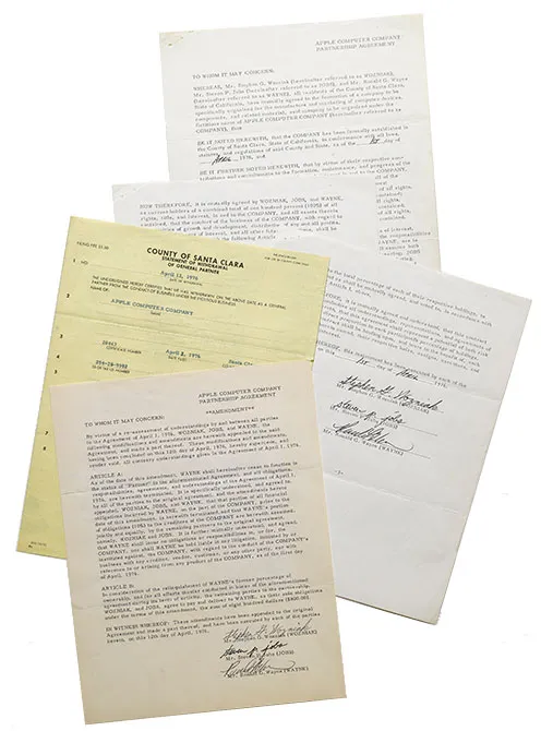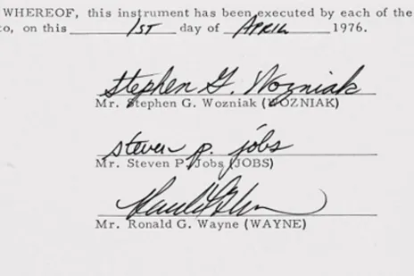 El 1 de abril de 1976, Jobs y Wozniak acudieron al apartamento de Wayne, en Mountain View, para redactar los estatutos de la empresa. Wayne, el tener experiencia con la "documentación legal", redactó el texto de tres páginas.