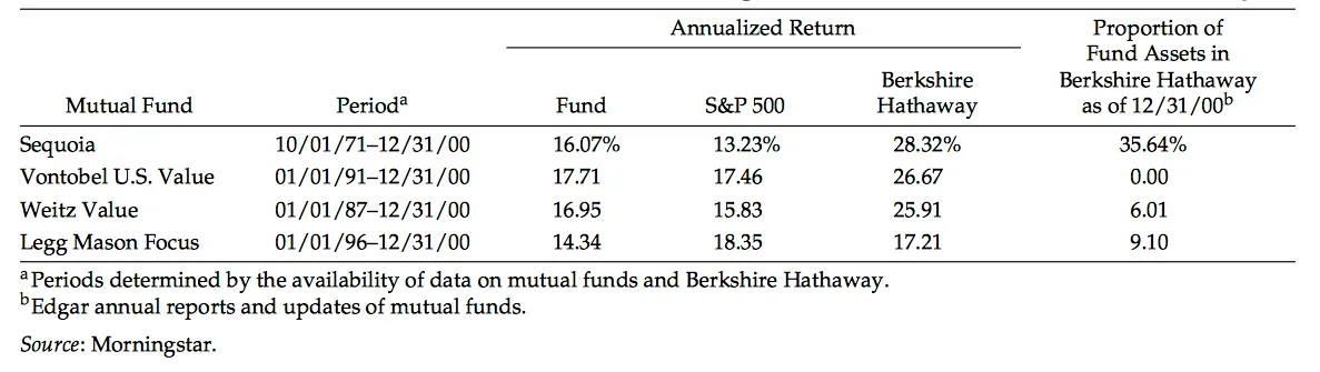 Así, por ejemplo, Will Ruane (seguidor de Graham y gestor de Sequoia Fund) obtuvo, desde el 30 de Septiembre de 1972 al año 2000, una rentabilidad acumulada del 16,07%, muy por encima del +13,23% del S&P 500 pero lejos del +28,32% de Berkshire Hathaway.