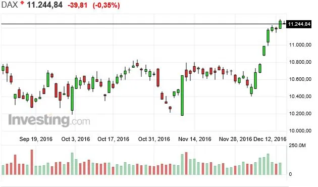 Patrón similar se observa en gráfico diario en el DAX: