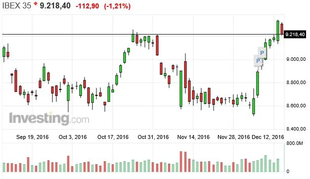 Hay que recordar que la confirmación de este patrón de reversión bajista debe darlo la jornada de hoy, 15 de diciembre. Si la sesión cierra por encima de los máximos de la vela anterior se anulará el cambio de tendencia. En algunas ocasiones se llegan a producir de 1 a 3 sesiones de transición antes de iniciarse el tramo bajista.