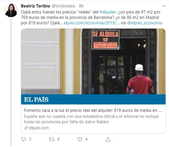Aunque las cifras del Ministerio suponen, en teoría, "acercarse" a los precios reales del alquiler en España, lo cierto es que teniendo en cuenta la subida que ha experimentado en los últimos años el alquiler, resulta complicado creer que se trata de los precios que realmente pagan los inquilinos. De hecho, a lo largo del día han sido muchas las voces que han cuestionado las cifras. Una de ellas la de la directora de Estudios de Fotocasa, Beatriz Toribio (podéis escuchar nuestro último podcast aquí), quien comentaba: "un piso de 97 metros cuadros por 769 euros de media en la provincia de Barcelona? Ojalá estos fueran los precios reales".