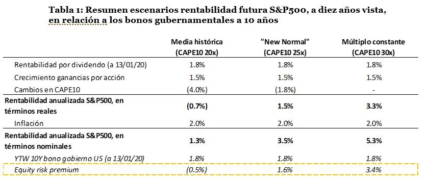 [1] La rentabilidad de una acción se puede descomponer como la suma de la rentabilidad por dividendos, el crecimiento de los beneficios por acción y el cambio en el múltiplo de valoración.