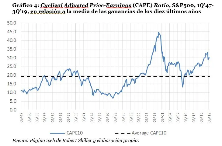 [8] Standard and Poor’s ofrece series históricos de tanto los beneficios reportados por las empresas de acuerdo con las normas GAAP (excluyendo los beneficios por operaciones discontinuadas), como los beneficios operativos, un concepto no GAAP en el que las empresas tienen discrecionalidad a la hora de quitar partidas transitorias. Como es de esperar, dicha discrecionalidad siempre actúa en una misma dirección, con el resultado de que los beneficios operativos son más elevados que los beneficios reportados.