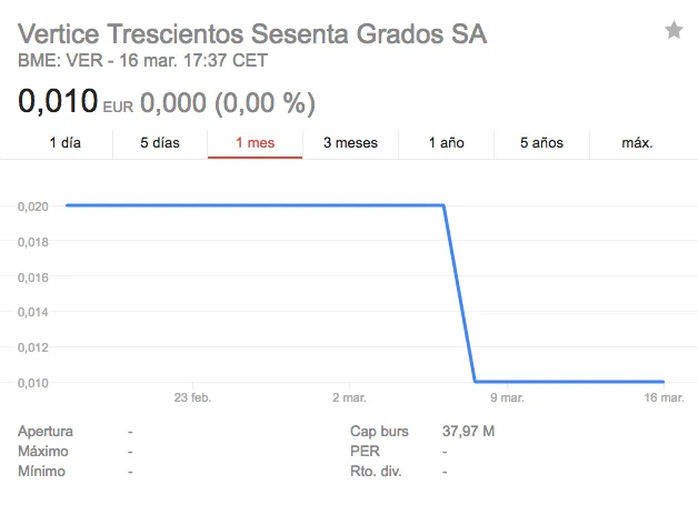 La compañía sigue inmersa en una subasta de volatilidad (por la dificultad de cruzar órdenes de compra y venta). El pasado jueves, la CNMV lanzó una alerta sobre Vértice 360, recomendando "máxima cautela a accionistas e inversores en la negociación de las acciones de la compañía".