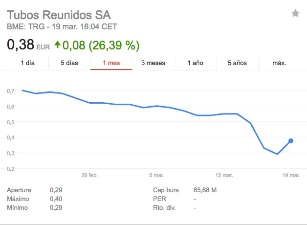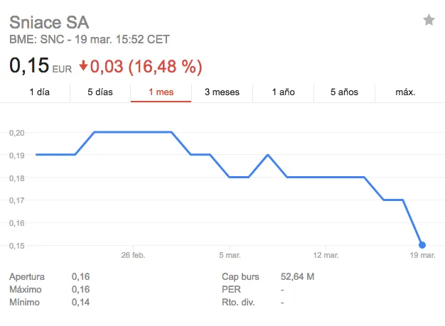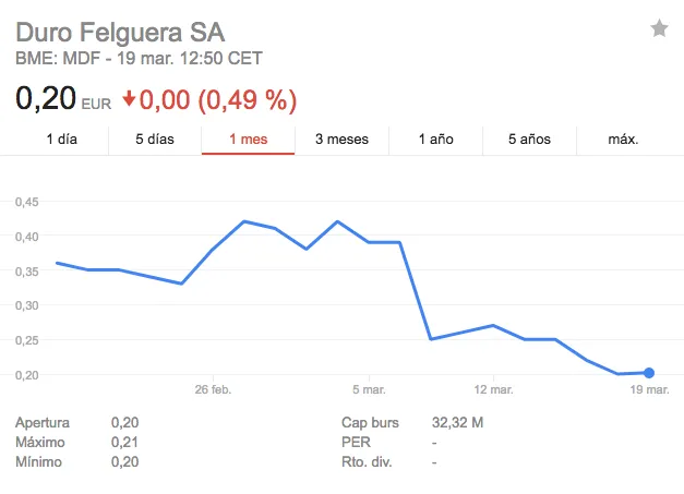 - Se desplomó más de un 33% el pasado 8 de marzo, tras ser suspendida durante unas horas por la CNMV. Como resultado, la firma anunció una ampliación de capital dentro del acuerdo con los acreedores, que exigen entre 100 y 125 millones.