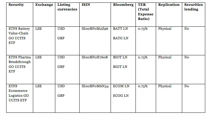 Los tres productos inicialmente cotizarán en la bolsa de valores de Londres, para ser registrados también posteriormente en Deutsche Börse, Borsa Italiana y NYSE Euronext.