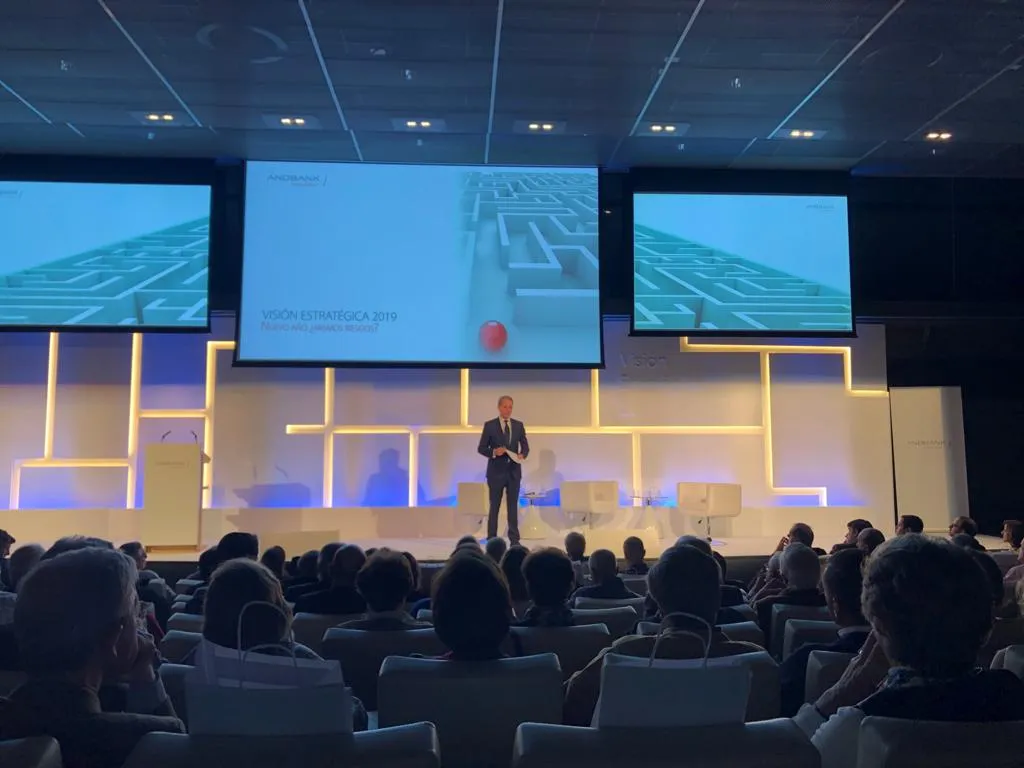 Este martes nos hemos venido a la conferencia de Andbank, en la que celebra su Jornada de Estrategia 2019 "Nuevo año: ¿mismos riesgos? No te pierdas detalle con nuestro minuto a minuto. Además, si lo prefieres, puedes seguirla en directo.