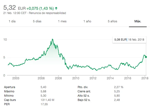 Ence está imparable. La compañía ha conseguido duplicar su precio este último año y se ha revalorizado más de un 100% desde febrero de 2017. Además, se encuentra en máximos de 2008.
