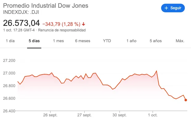Al otro lado del Atlántico el panorama no es más alentador: ayer conocimos que la actividad de las fábricas estadounidenses se ha hundido a mínimos de la Gran Recesión en 2009. En concreto, el dato publicado por el Instituto de Gestión de la Oferta (ISM), lo sitúa en los 47,8% desde el 49,1% del mes anterior, lo que representa su peor lectura desde junio de 2009. La consecuencia más inminente se notó en Wall Street: el Dow Jones se dejó un 1,28% y el S&P500 un 1,23%.