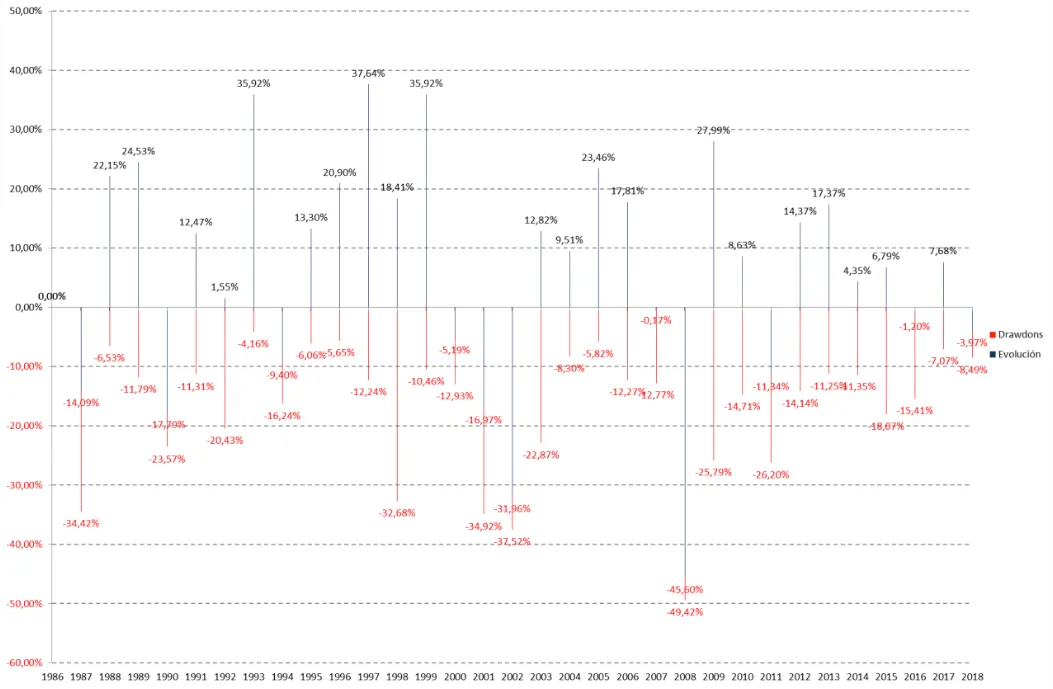 Sin embargo, lo más habitual es lo que ha ocurrido estos días de atrás, que haya correcciones desde máximos a mínimos sin que por ello haya pérdidas en el acumulado del ejercicio.