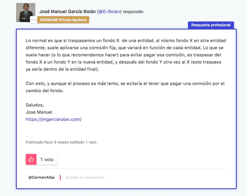Y sobre temáticas muy diferentes: bolsa, fondos de inversión, fiscalidad, pensiones, vivienda, bancos, comisiones, etc... Y, como podéis ver, resueltas para satisfacción de los usuarios.