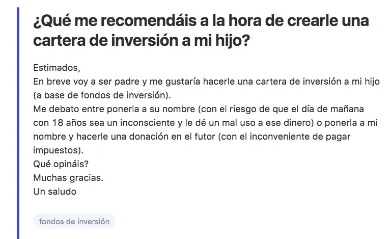 - ¿Qué me recomendáis a la hora de crearle una cartera de inversión a mi hijo?