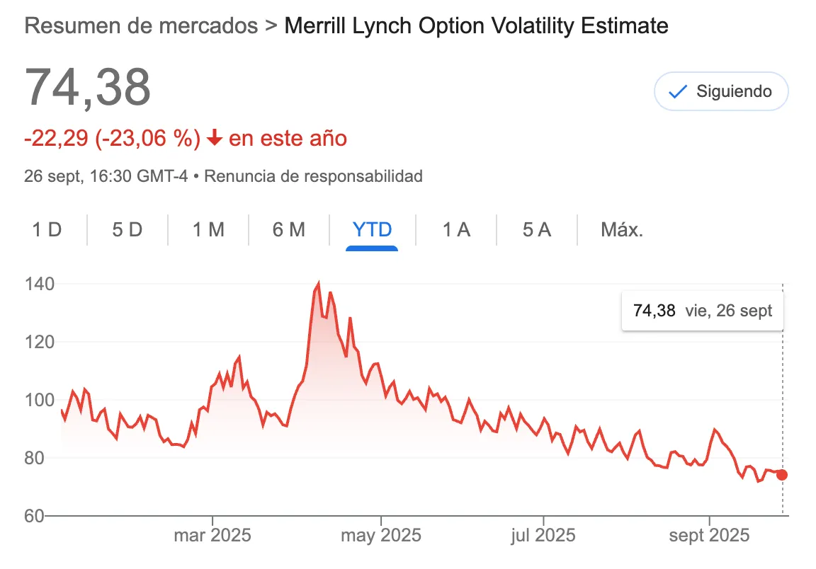 2️⃣. El Merrill Lynch Option Volatility Estimate (MOVE) también en calma