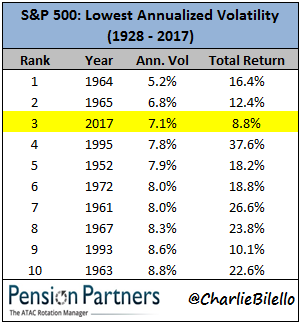 La volatilidad se puede medir de muchas maneras diferentes y en los últimos días se encuentran estudios que comparan la volatilidad del 2017, que es excepcionalmente baja, con otros años parecidos.
