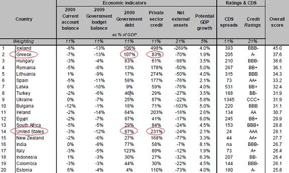 En estos últimos días se ha hablado mucho del riesgo país a raíz de las amenazas de S&P de rebajarle el rating a España. Seguro que os estáis preguntando cuáles son los países con más riesgo (financiero) del planeta. La respuesta en este pantallazo extraído de The Pragmatic Capitalist. España se encuentra desgraciadamente en el Top 10. Por cierto, Estados Unidos no está muy lejos de nosotros en ese ranking.