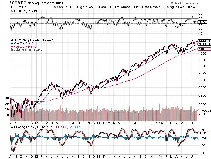 En su post Estrategiaytendencia (Juan) comenta que vamos a estar escalando paredes de dudas o walls of worry durante mucho tiempo. Pues bien, en mis lecturas del fin de semana me he encontrado con este gráfico que hace referencia a esas paredes de dudas. Coincido con Juan en que nos encontramos en esa fase del ciclo bursátil pero comparando el Nasdaq (la comparativa con el S&P 500 es menos llamativa) con el primer gráfico uno se pregunta si no hemos llegado al final de la pared y toca la fase llamada aversion. Los más pesimistas dirán, incluso, que aún no hemos llegado a la fase de discouragement.