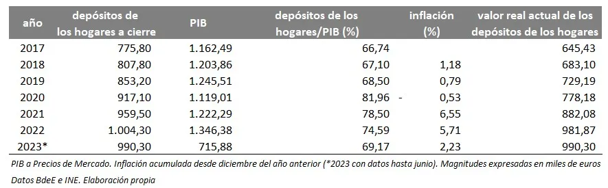 La inflación acumulada entre diciembre de 2016 y junio de 2023 es del 16,8%. Si la remuneración de los depósitos desde entonces ha tendido a cero, los 775.800€ en depósitos que había en 2017 tienen una capacidad de compra actual de 645.430€. Su valor actual debería ser de 906.130€ para preservar su capacidad de compra. Los depósitos de 2017 pertenecen a muchos perfiles diferentes entre los que se encuentran inversores conservadores. Hemos atravesado años de tipos negativos, lo cual ha dificultado la gestión de estos perfiles, que han sido precisamente los más afectados. Pero han pasado más de 5 años y siguen ahí. Y el tiempo siempre es un aliado a favor de las inversiones y en contra del valor real del dinero. Y es por esto por lo que la educación financiera es tan importante como herramienta para preservar nuestro patrimonio y gestionar eficientemente las finanzas personales.