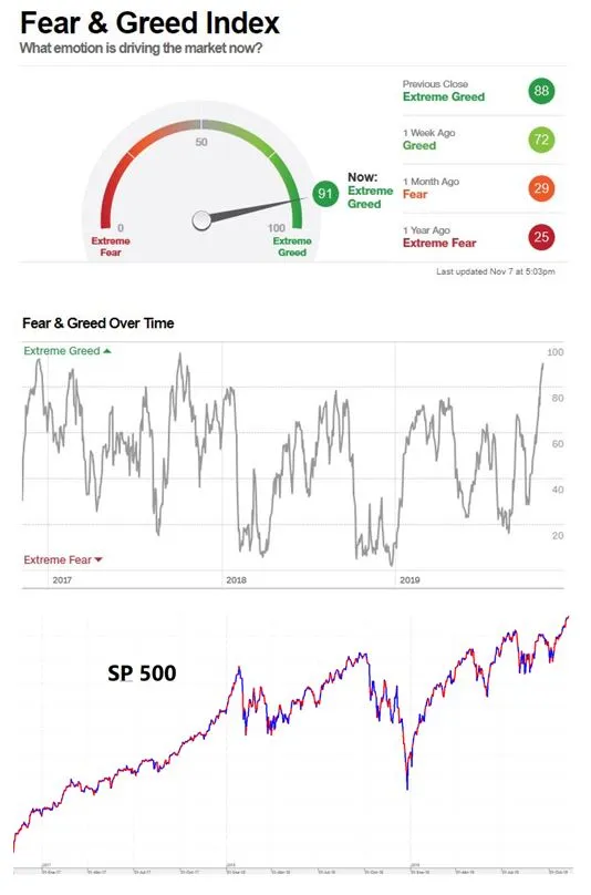 ❸En la imagen centarl la evolución del “Fear & Greed Index” desde finales del 2016