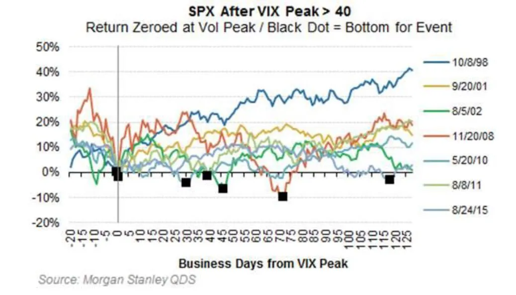 El 16 de marzo el VIX superó el 82 (por encima incluso de los valores tras la quiebra de Lehman Brothers). Si tomamos los eventos que en los últimos 25 años han disparado este índice por encima de 40, tenemos los siguientes: