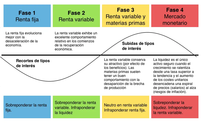 Fases del ciclo de mercado. Muchos movimientos tácticos tratan de