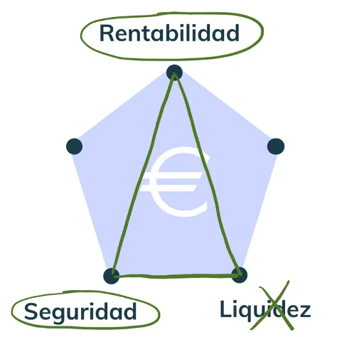 Tras eliminar las dos variables que menos podemos controlar como inversores, aparece el triangulo de la inversión donde entran en juego la seguridad, la rentabilidad y la liquidez. Todos sin excepción alguna, queremos una inversión que tenga estas 3 variables pero siento decirte que el producto perfecto no existe y que si alguna vez te ofrecen una inversión con estas 3 característica sospecha.