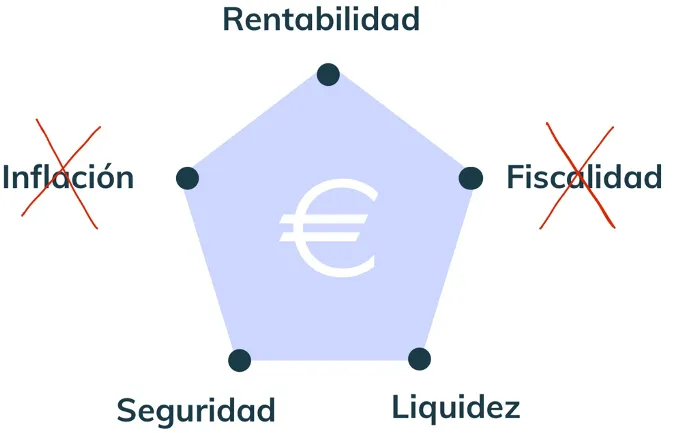 TODA inversión que hagamos, da igual del tipo que sea, le afectan SIEMPRE 5 variables: inflación, fiscalidad, seguridad, rentabilidad y liquidez.