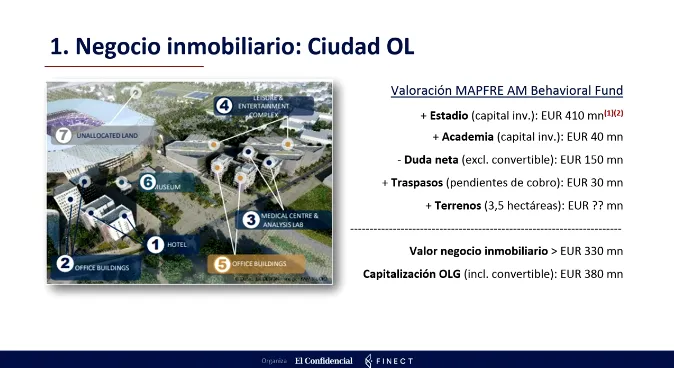 Hasta aquí bien, pero ¿por qué es atractivo invertir en el Olympique de Lyon? La razón principal que expuso el gestor de Mapfre AM es que para encontrar valor en los clubes europeos se necesita una buena gestión y eso solo lo han encontrado por ahora en el Olympique de Lyon, dirigido por Jean-Michel Aulas. Algunos de los atractivos principales que enumeró García Álvarez durante el evento fueron la inversión inmobiliaria, el merchandising, la venta de jugadores y los derechos de televisión.