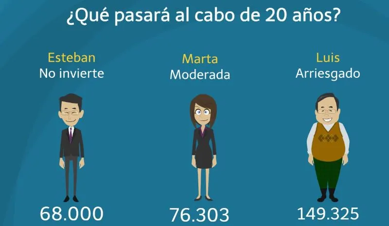 Sin embargo, ¿Para qué sirve realmente una cuenta corriente? Seguramente te vendrán a la mente cuestiones como domiciliar recibos, tener el dinero del día a día, pagar compras recurrentes, ingresar la nómina… Si entre tus respuestas aparece “ahorrar” o “hacer crecer mis ahorros” es que vives en el pasado. Una cuenta corriente no sirve para hacer crecer tus ahorros. Si aspiras a tener una buena jubilación deberías invertir y esta imagen te explica claramente por qué.