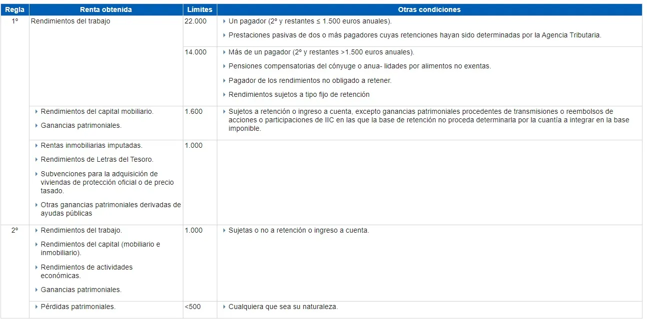 - Cuando el pagador de los rendimientos de trabajo no esté obligado a retener, el límite es de 14.000 euros.