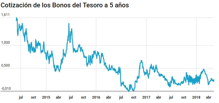 Aquí puedes ver la evolución de la cotización del bono español a 5 años.
