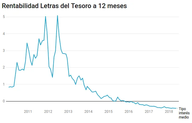El siguiente cuadro recoge el interés medio de las letras a 12 meses.