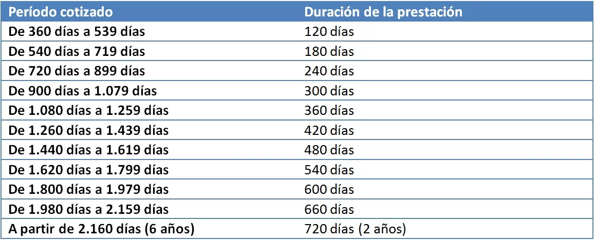 Si quieres percibir la prestación por desempleo también es necesario haber trabajado un mínimo de tiempo de un año (360 días en realidad). A partir de ahí, el tiempo de paro a cobrar dependerá directamente del número de días trabajados. Cuantos más días cotizados sumes, durante más tiempo podrás recibir la prestación.