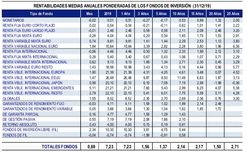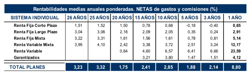 Aquí la tabla de rentabilidades medias anuales ponderadas de los planes