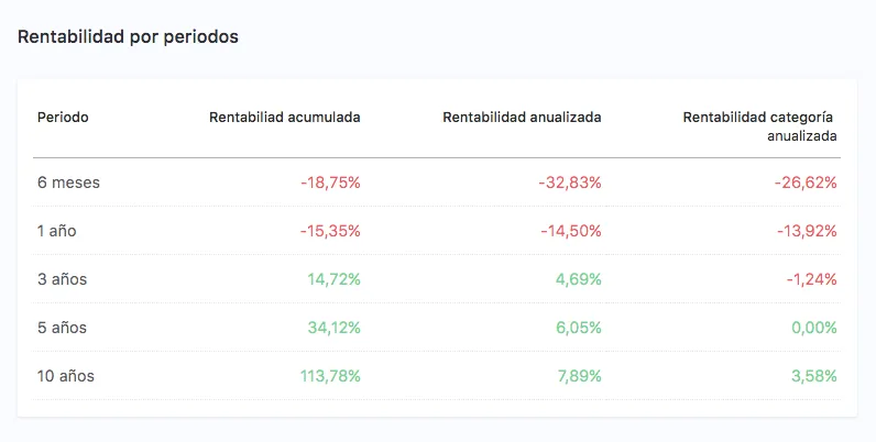 Algunas de esas amenazas se han concretado este 2018 y el fondo cae un 20% desde máximos y un 15% en el año. Aun así, sigue siendo uno de los fondos de bolsa española más rentables a largo plazo. Como se puede ver, tanto a 3 como a 5 y 10 años, muestra unas rentabilidades anualizadas bastante aceptables, pese la caída que lleva el fondo en este 2018 bajista para las bolsas.