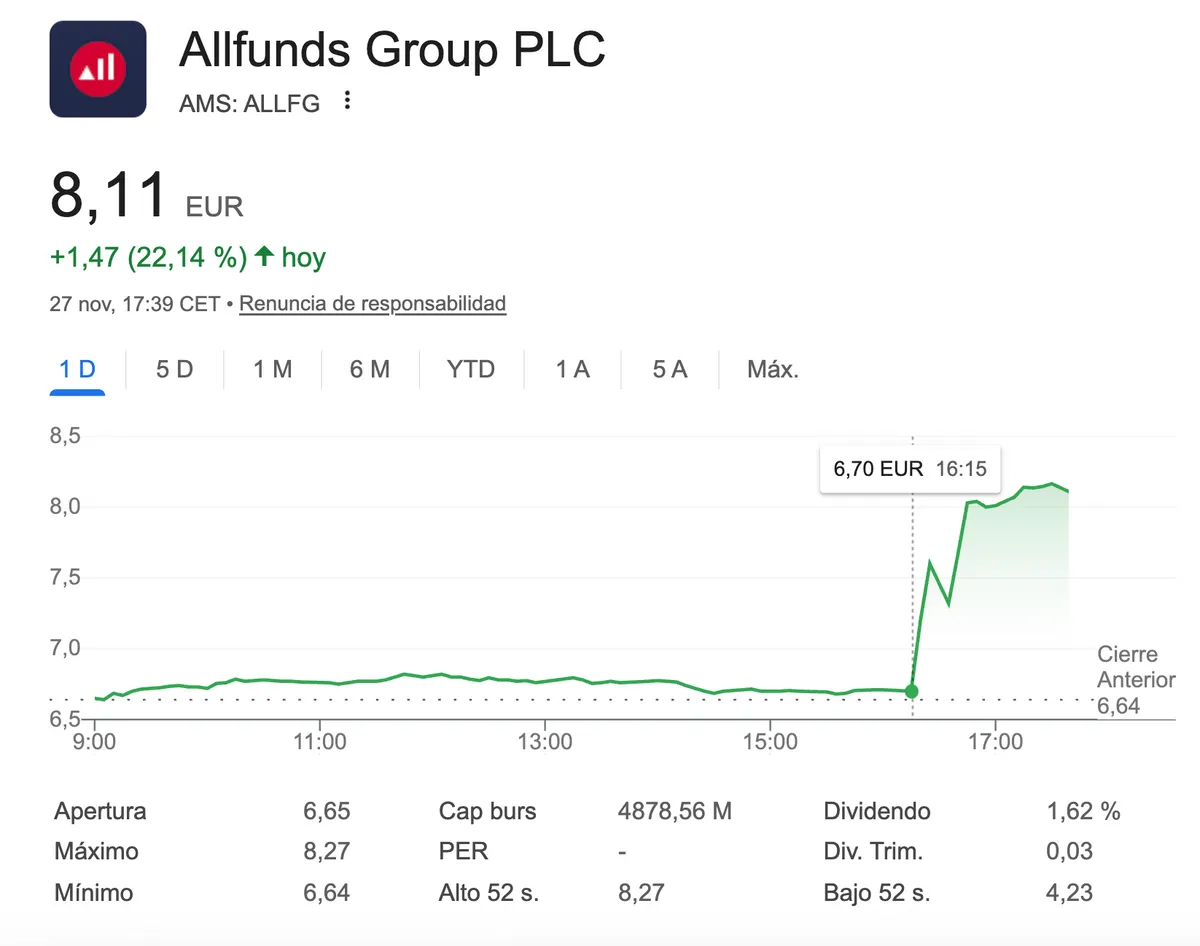 Además, si la operación se cierra, los accionistas de Allfunds recibirían también dividendos extra por 2026 y 2027.