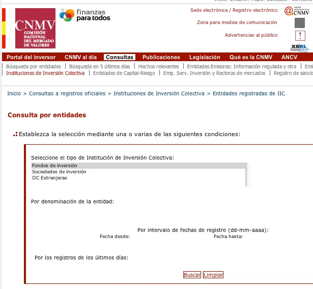 Hay que ir al buscador de Instituciones de Inversión Colectiva, seleccionar IIC Extranjeras, poner el nombre de la entidad y, una vez seleccionado el fondo que nos interesa, pinchar en la pestaña "comercializadores".