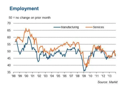 Pésimos los últimos datos de actividad del sector servicios e industrial del país galo. Según Markit, en ambos casos se deterioran hasta los niveles más bajos de siete meses, en zona de contracción económica.