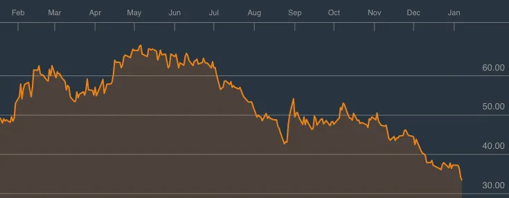 tiempo, hoy se desploma de nuevo y cae ya por debajo de los 33