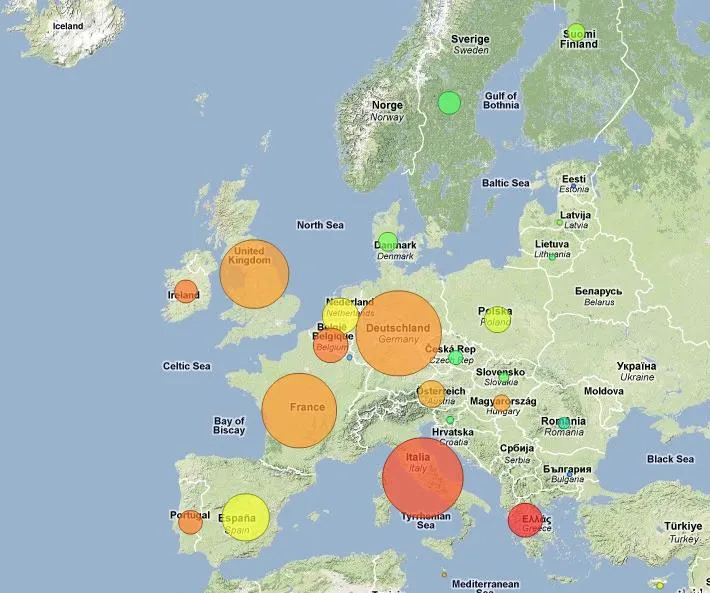 , medida en euros. El círculo más grande en este sentido es Alemania