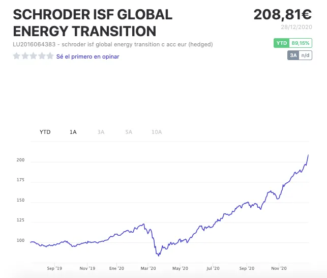 ¿Que este 2020 tan complicado ha habido fondos que han conseguido casi un 90% de rentabilidad? Sí, e incluso mayores. Y hoy os voy a compartir la entrevista que realicé hace un par de semanas al gestor de uno de ellos, el Schroder ISF Global Energy Transition. Su gestor, Mark Lacey, se dedica a buscar las compañías que más se pueden beneficiar de la transición en el mix energético mundial hacia las energías renovables, para avanzar en la descarbonización del sistema y la lucha contra el cambio climático. Charlamos con él sobre las claves de este comportamiento tan espectacular, las valoraciones del sector tras este rally, las energías ganadoras del futuro y las compañías españolas del sector.