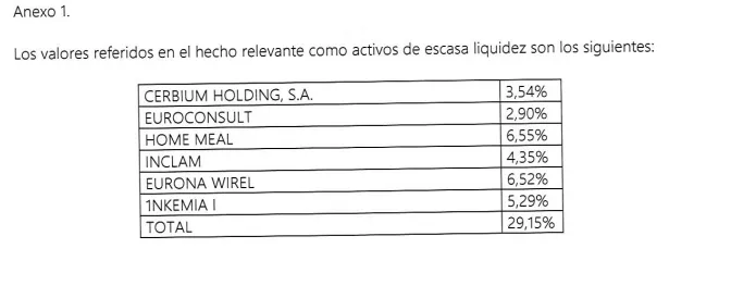 Y según el mismo documento remitido por Esfera, estos serían los valores con baja liquidez en los que estos productos tienen posiciones.